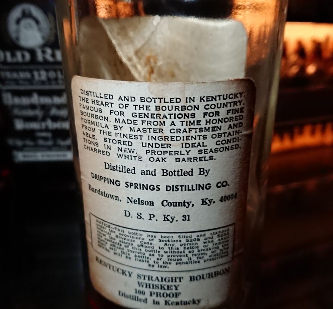 オークウッドに他の種類があるのか判りませんが、これはボトルド・イン・ボンド規格の7年熟成ストレート・バーボン。ボンデッド法ではラベルに蒸留施設を銘記しなくてはならないので、裏ラベルにはヘヴンヒルの旧バーズタウン施設のパーミット・ナンバー(DSP-KY-31)が記載されています。