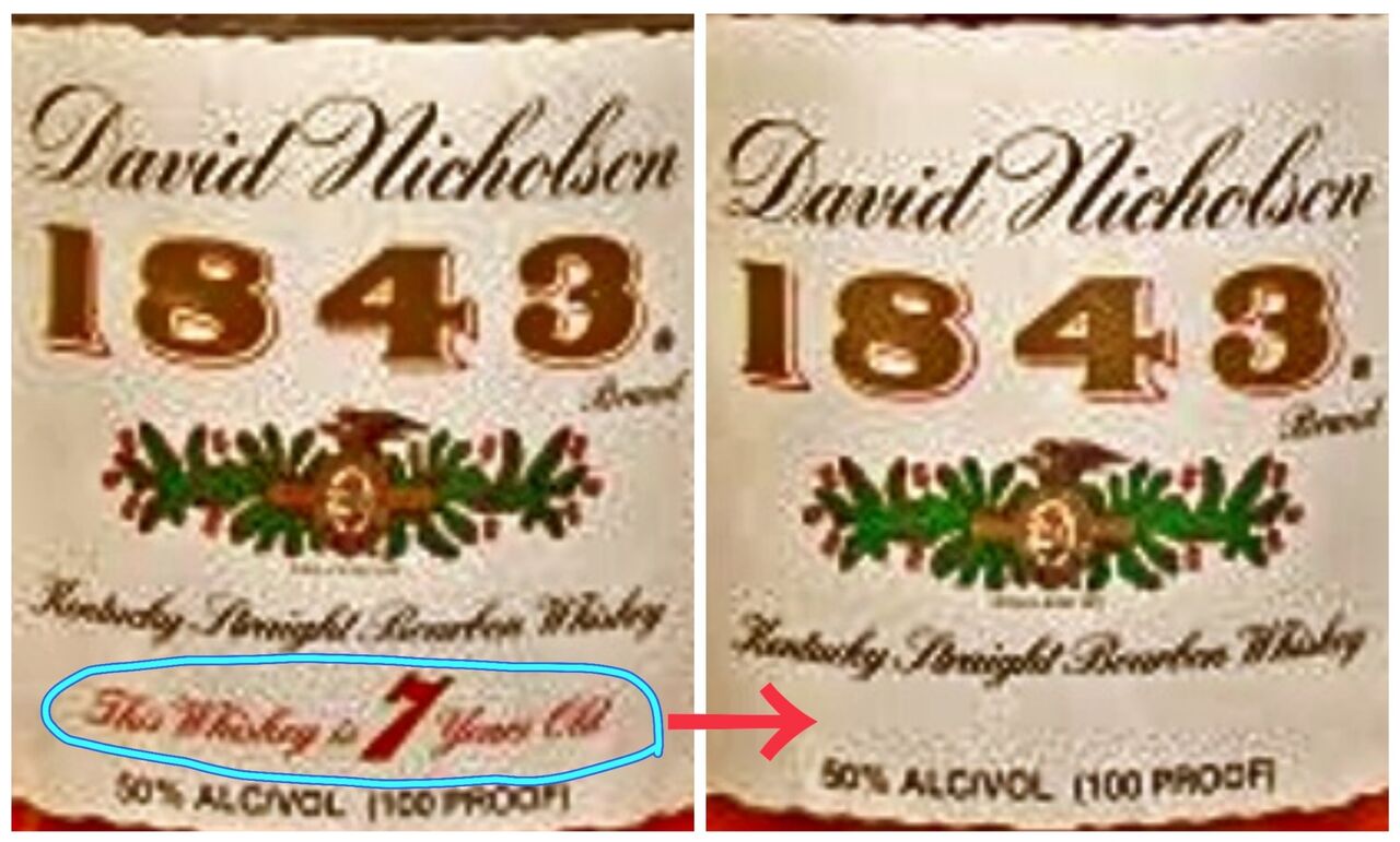 当時のデイヴィッド・シャーマン社は、蒸留所が閉鎖された時も、まだスティッツェル=ウェラーからウィスキーを仕入れていたそうです。おそらくスティッツェル=ウェラーの原酒が枯渇した後、ある時点でヘヴンヒル・バーンハイム蒸留所の原酒に切り替わったと思われますが、その明確な時期は判りませんでした。また、いくら調べてもユナイテッド・ディスティラーズが所有していた数年の間のバーンハイム原酒が使用されたかどうかも判りません。ここら辺の詳細をご存知の方はコメントよりご教示頂けると助かります。それは偖て措き、デイヴィッド・ニコルソン1843の瓶形状がスクワット・ボトル(トップ画像参照)の場合、おそらくデイヴィッド・シャーマンが販売したもので中身はヘヴンヒルと思われるのですが、初めはあった7年熟成表記が多分2000年代半ばあたり?にNASになりました。