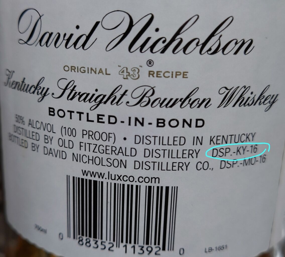スティッツェル=ウェラーからヘヴンヒルに変わっただけでも、バーボン通からの評価があまり宜しくなかったのに更にスペックが落ちた訳です。まあ、これは「時代の要請」もあるので仕方ないとは思いますが、それよりも評判が悪かったのは裏ラベルに記載されたDSPナンバーの件でした。ボトルド・イン・ボンドを名乗る場合、ラベルには当のスピリッツを生産した蒸留所を表示する必要があります。そしてそれは真実でなければならないでしょう。それなのにデイヴィッド・ニコルソン1843ブランドは、事実上スティッツェル=ウェラーからの供給が使い果たされた後もずっと、その蒸留所をDSP-16(S-Wのパーミット・ナンバー)として示し続けたのです。この件はバーボン愛好家の間で問題視されました。ラクスコはこの誤りは単純な見落としで、ラベルをそのまま再印刷し続けてしまったと主張していたそうです。