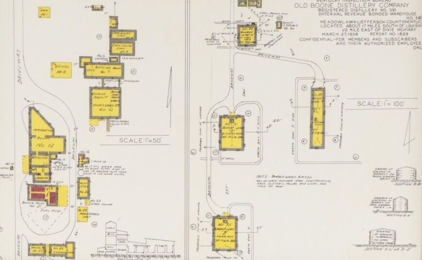 ジョン・シニアは、禁酒法が廃止されて間もなくジェファソン・カウンティのメドウローンに新しくジョン・P・ダント蒸溜所(RD#39)を建設し、1933年に会社を組織します。メドウローンはシャイヴリーから南西に15マイルほどに位置し、現在ではヴァリー・ヴィレッジと呼ばれています。第二次世界大戦中は同じくジェファソン郡アンカレッジのグロスカース蒸溜所(RD#26)をリースして、両事業をメドウローン・ディスティラリー・カンパニーとして操業しました。グロスカース蒸溜所はジェファソンタウン近くのフロイズ・フォーク沿いのエコー・トレイルにあり、禁酒法廃止後に建設され、1968年の火災で倉庫2棟が焼失し閉鎖したそう。メドウローン・ディスティラリー・カンパニーはジョン・P・シニアが社長、息子のジョン・P・ジュニアが副社長兼財務およびディスティラーだったようです。この二つの蒸溜所の合計マッシング・キャパシティは1日471ブッシェルで、6つの倉庫には7500バレルを貯蔵することが出来たと言います。